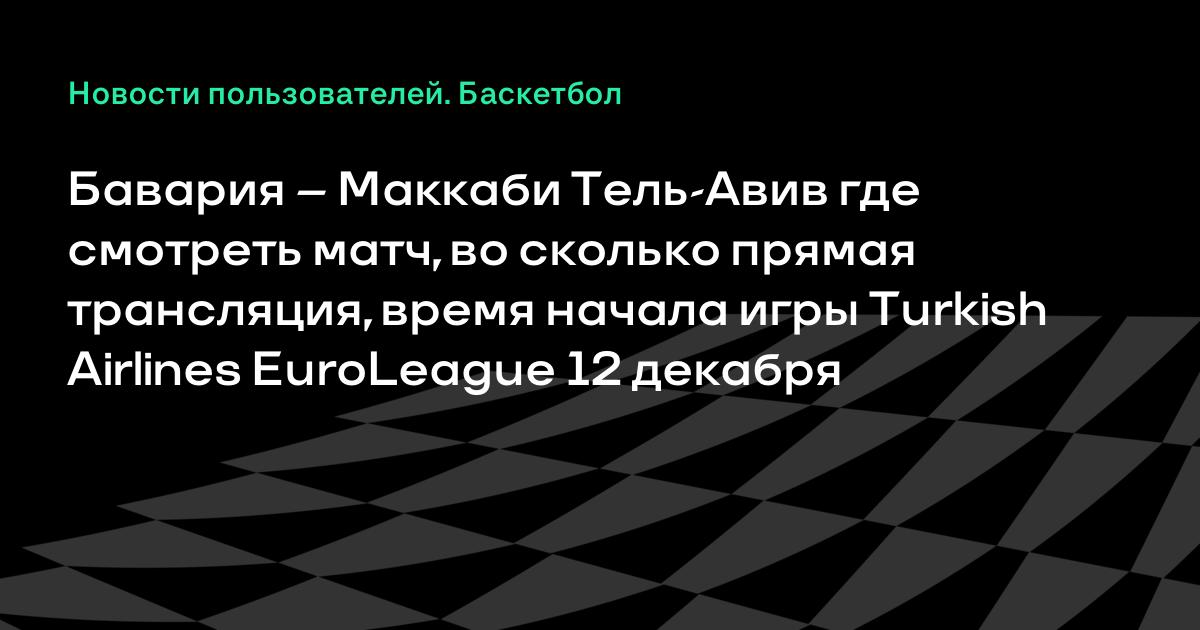 Бавария – Маккаби Тель-Авив где смотреть матч, во сколько прямая трансляция, время начала игры Turkish Airlines EuroLeague 12 декабря
