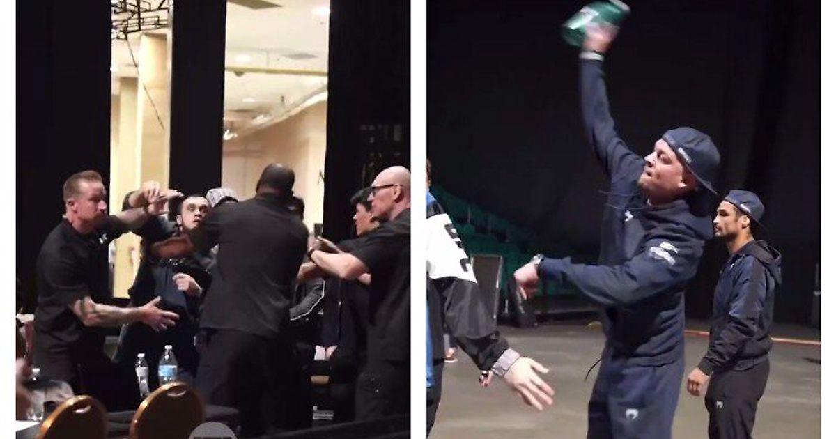 Нейт Диаз и команда Махачева кинули друг в друга бутылки в Лас-Вегасе
