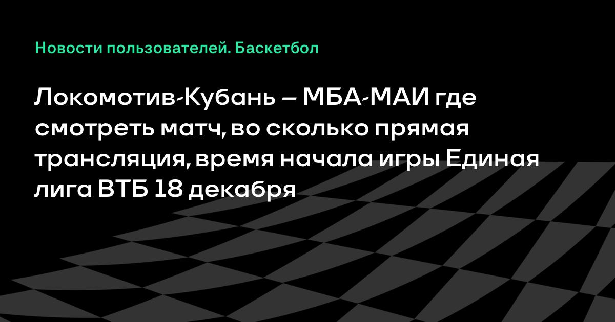 Локомотив-Кубань – МБА-МАИ где смотреть матч, во сколько прямая трансляция, время начала игры Единая лига ВТБ 18 декабря