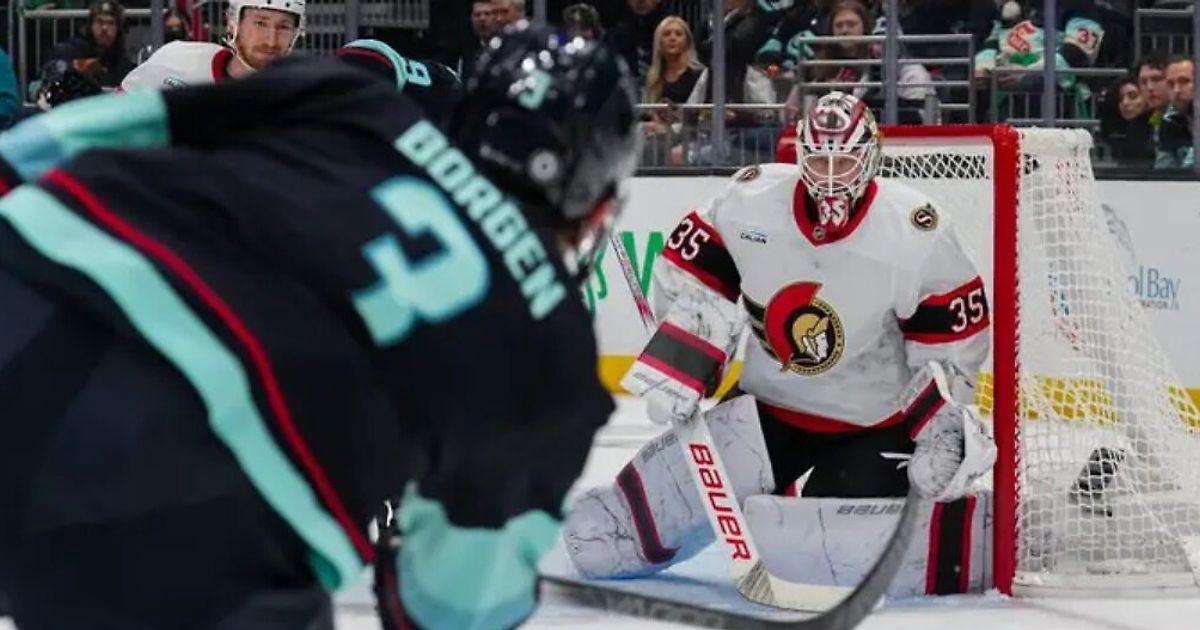 Вратарь «Оттавы» был признан первой звездой матча против «Кракена» (3:0) в регулярном чемпионате НХЛ.