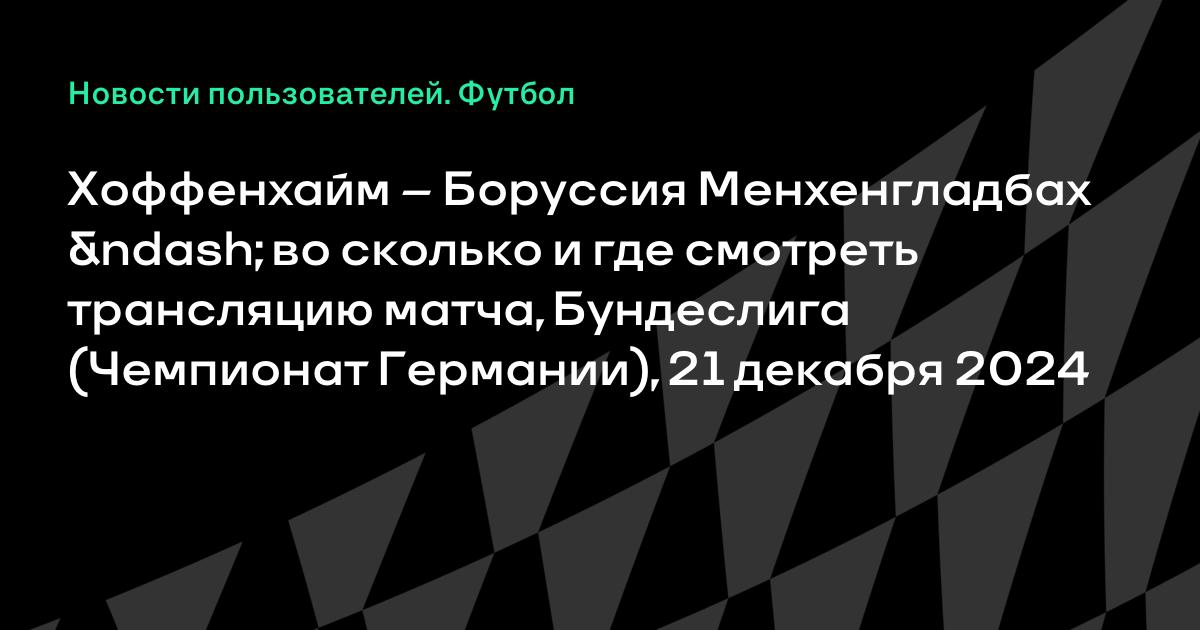 Хоффенхайм – Боруссия Менхенгладбах – во сколько и где смотреть трансляцию матча, Бундеслига (Чемпионат Германии), 21 декабря 2024