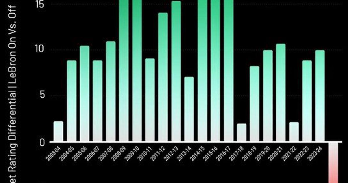 «Лейкерс» демонстрируют отрицательный показатель плюс/минус («-6,5») с Леброном Джеймсом на площадке
