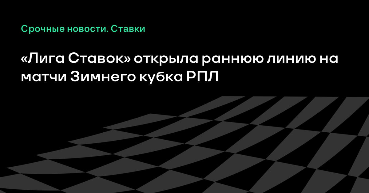 Букмекерская компания «Лига Ставок» предлагает раннюю линию на матчи Зимнего кубка РПЛ. Максимальные ставки с максимальным выигрышем до 100 000 000 рублей – только в «Лиге Ставок». «Лига Ставок» – лига российского футбола.