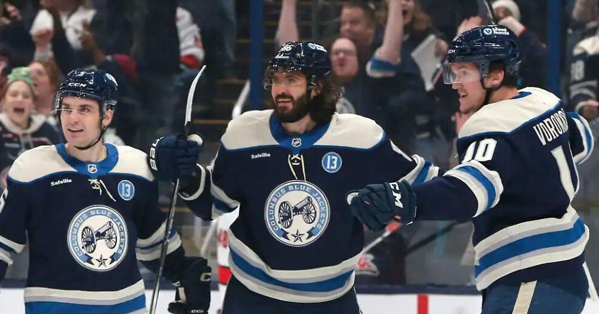 Форвард «Коламбуса» забросил шайбу и сделал результативную передачу в игре регулярного чемпионата НХЛ с «Каролиной» (4:3 Б).