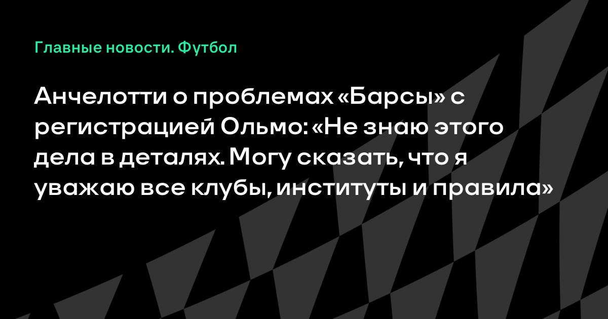 Анчелотти о проблемах «Барсы» с регистрацией Ольмо: «Не знаю этого дела в деталях. Могу сказать, что я уважаю все клубы, институты и правила»