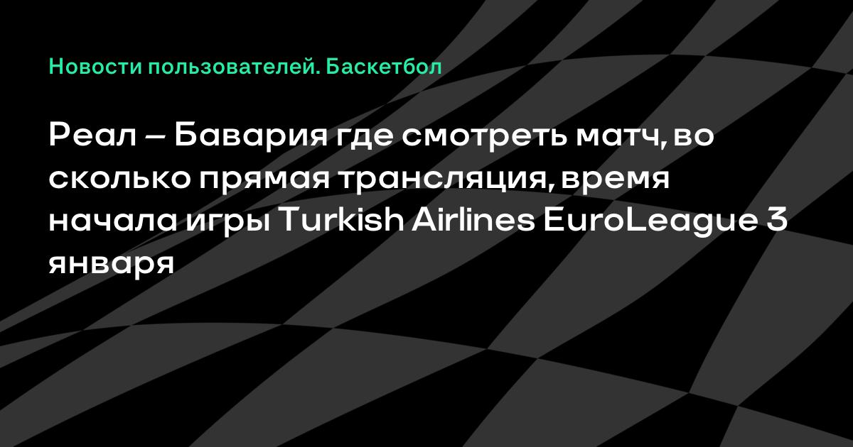 Реал – Бавария где смотреть матч, во сколько прямая трансляция, время начала игры Turkish Airlines EuroLeague 3 января