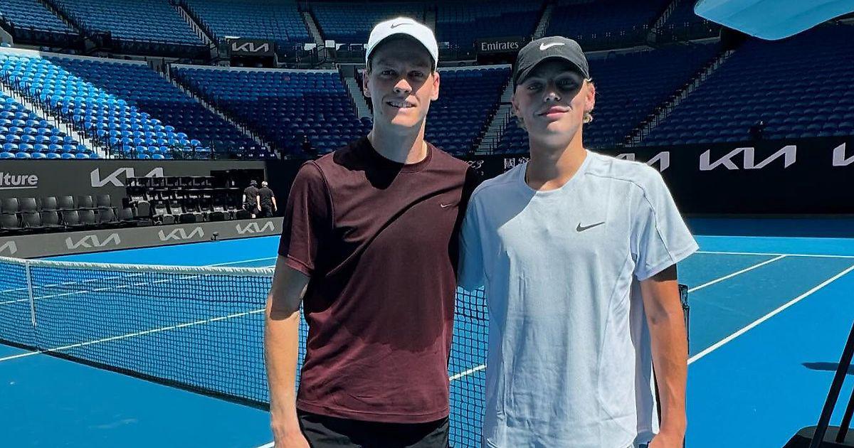 16-летний Круз Хьюитт потренировался с Янником Синнером на Арене Рода Лэйвера.