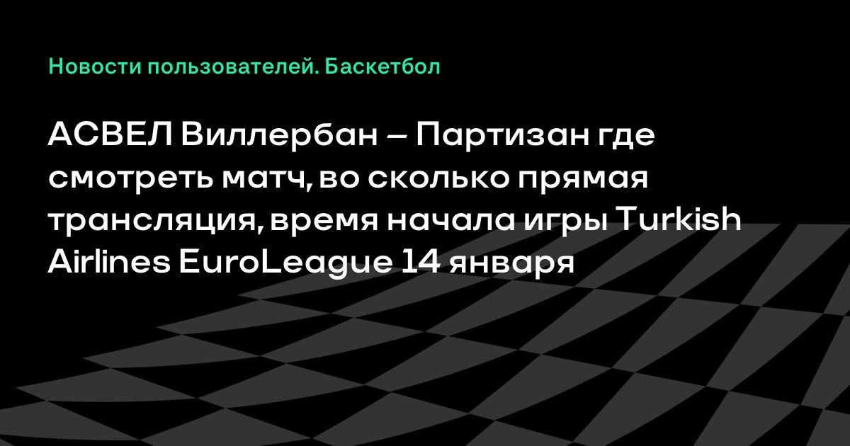 АСВЕЛ Виллербан – Партизан где смотреть матч, во сколько прямая трансляция, время начала игры Turkish Airlines EuroLeague 14 января
