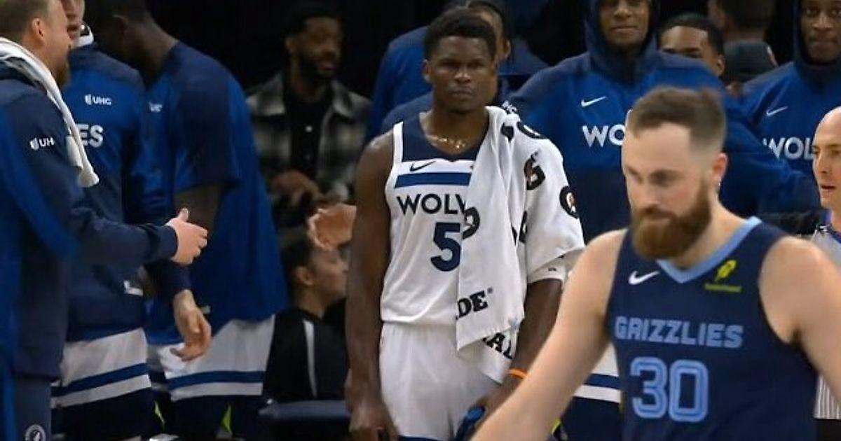 Защитник «Миннесоты» был наказан техническим замечанием на скамейке запасных за празднование данка Руди Гобера в 3-й четверти матча против «Мемфиса».