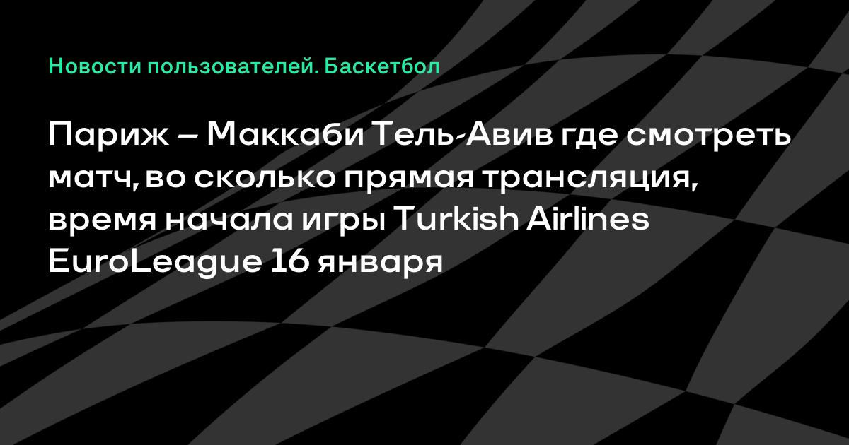 Париж – Маккаби Тель-Авив где смотреть матч, во сколько прямая трансляция, время начала игры Turkish Airlines EuroLeague 16 января
