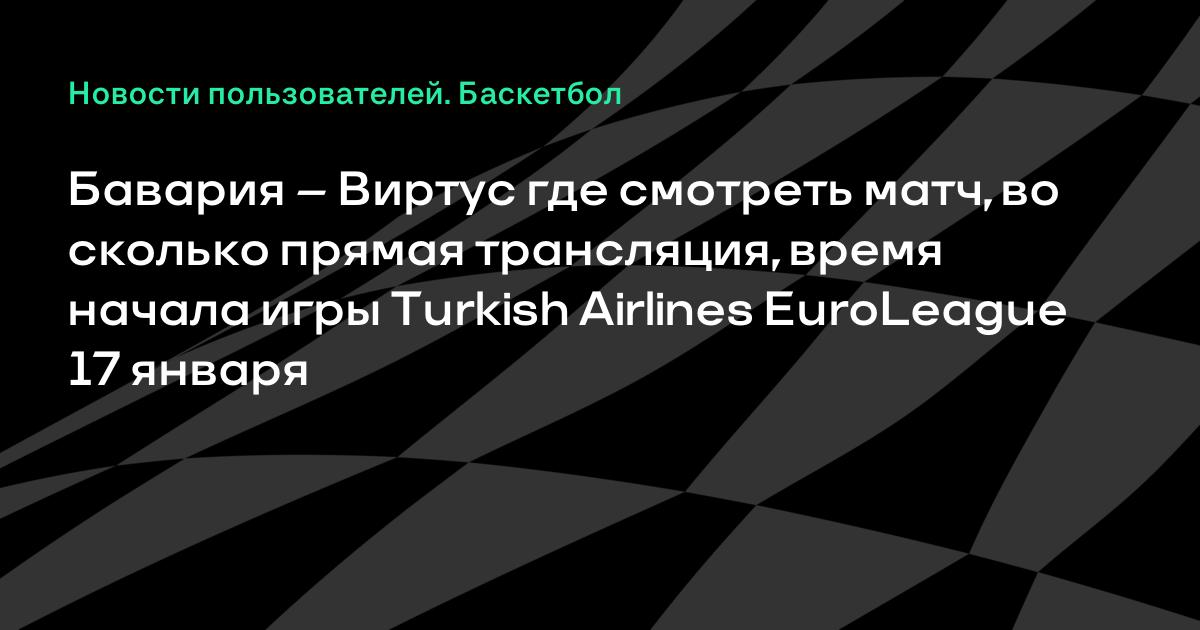 Бавария – Виртус где смотреть матч, во сколько прямая трансляция, время начала игры Turkish Airlines EuroLeague 17 января