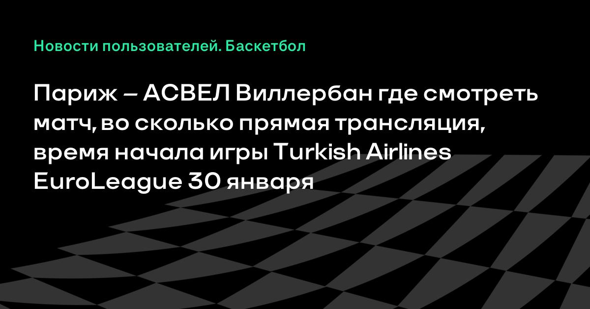 Париж – АСВЕЛ Виллербан где смотреть матч, во сколько прямая трансляция, время начала игры Turkish Airlines EuroLeague 30 января