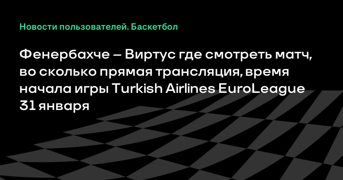 Фенербахче – Виртус где смотреть матч, во сколько прямая трансляция, время начала игры Turkish Airlines EuroLeague 31 января