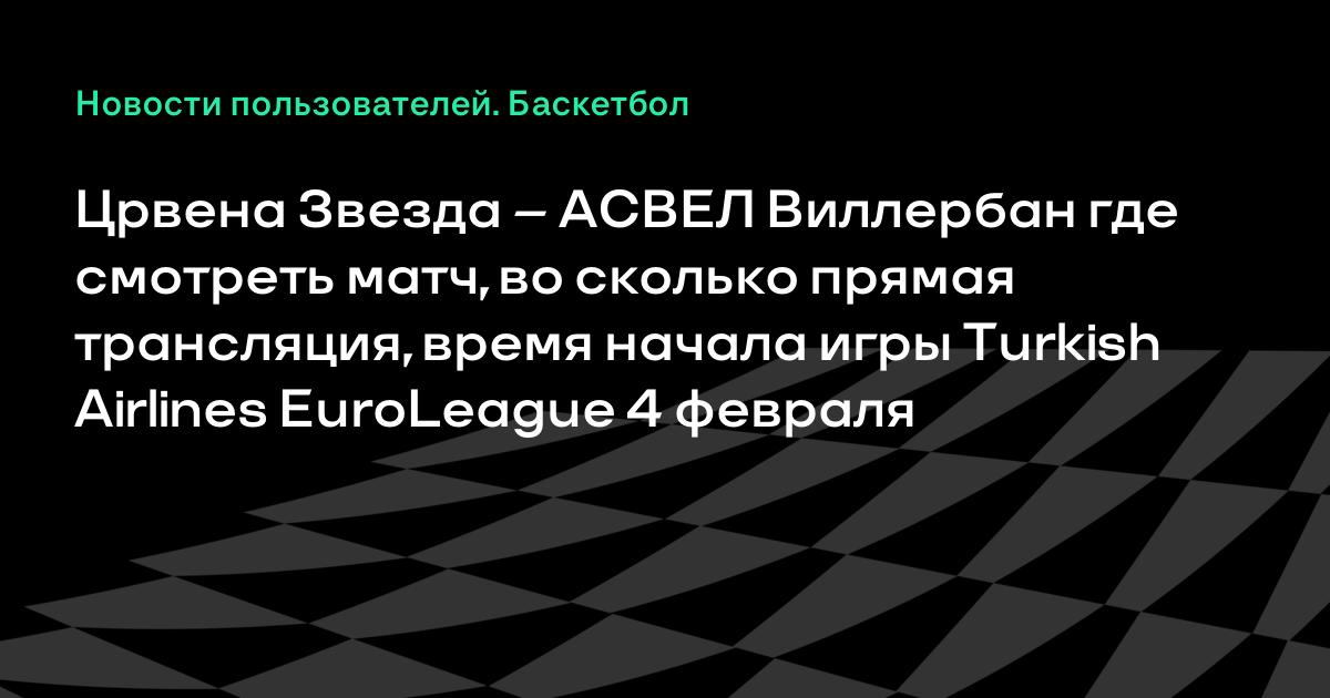 Црвена Звезда – АСВЕЛ Виллербан где смотреть матч, во сколько прямая трансляция, время начала игры Turkish Airlines EuroLeague 4 февраля