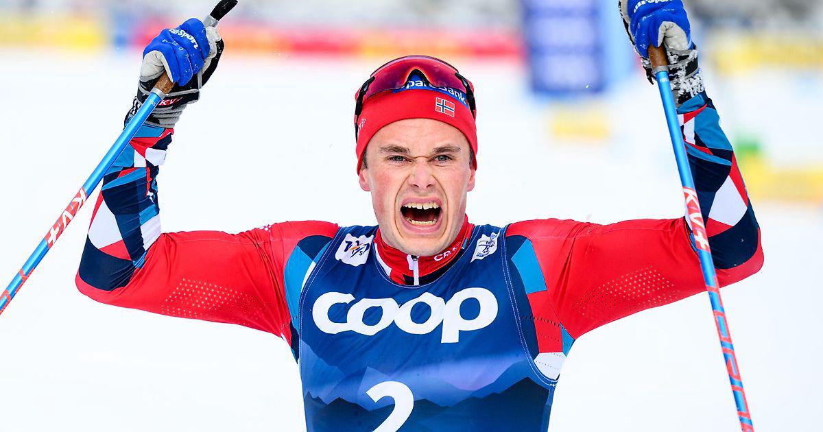 Харальд Амундсен победил в коньковой «разделке» на 10 км на Кубке мира в Италии.