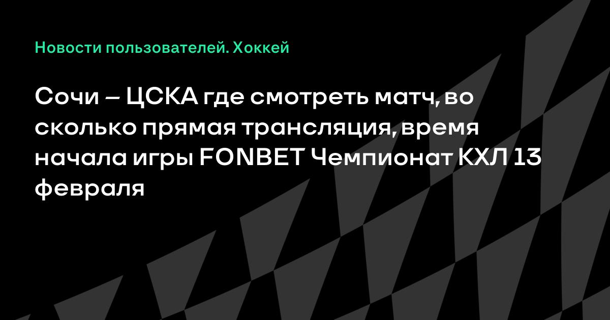 Сочи – ЦСКА где смотреть матч, во сколько прямая трансляция, время начала игры FONBET Чемпионат КХЛ 13 февраля