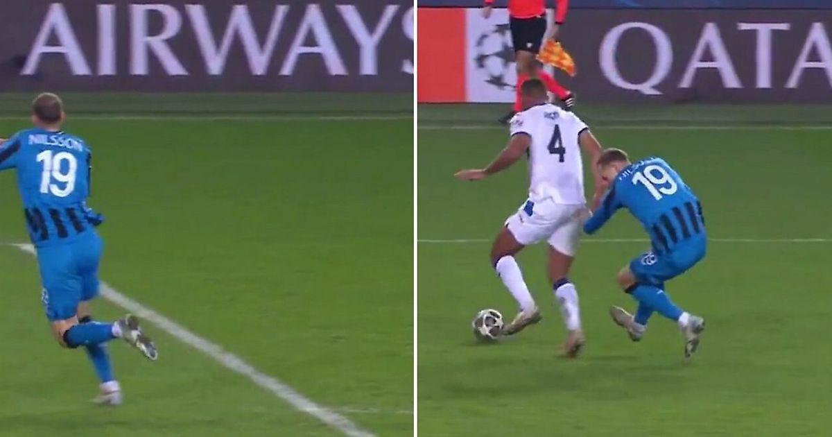 За касание лица Нильссона судья назначил пенальти в ворота «Аталанты» на 91-й. ВАР подтвердил фол Хина, «Брюгге» забил и выиграл