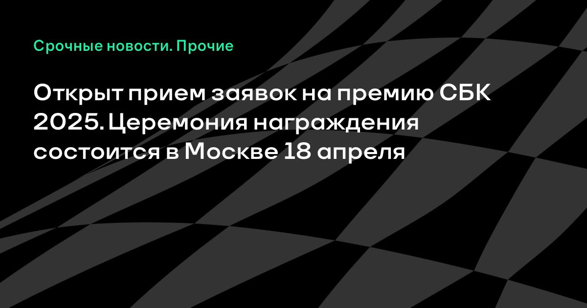 Открыт прием заявок на премию СБК 2025. Церемония награждения состоится в Москве 18 апреля
