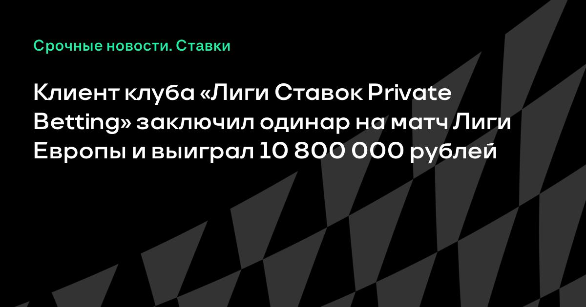Клиент клуба «Лиги Ставок Private Betting» заключил одинар на матч Лиги Европы и выиграл 10 800 000 рублей