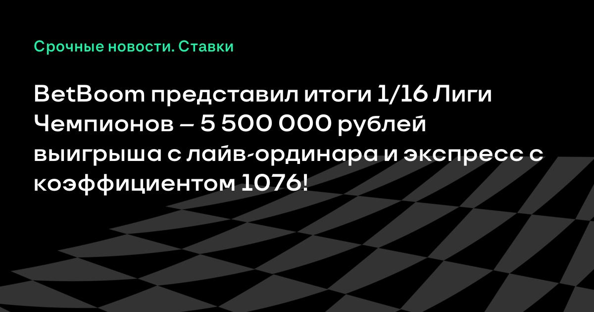 BetBoom представил итоги 1/16 Лиги Чемпионов – 5 500 000 рублей выигрыша с лайв-ординара и экспресс с коэффициентом 1076!