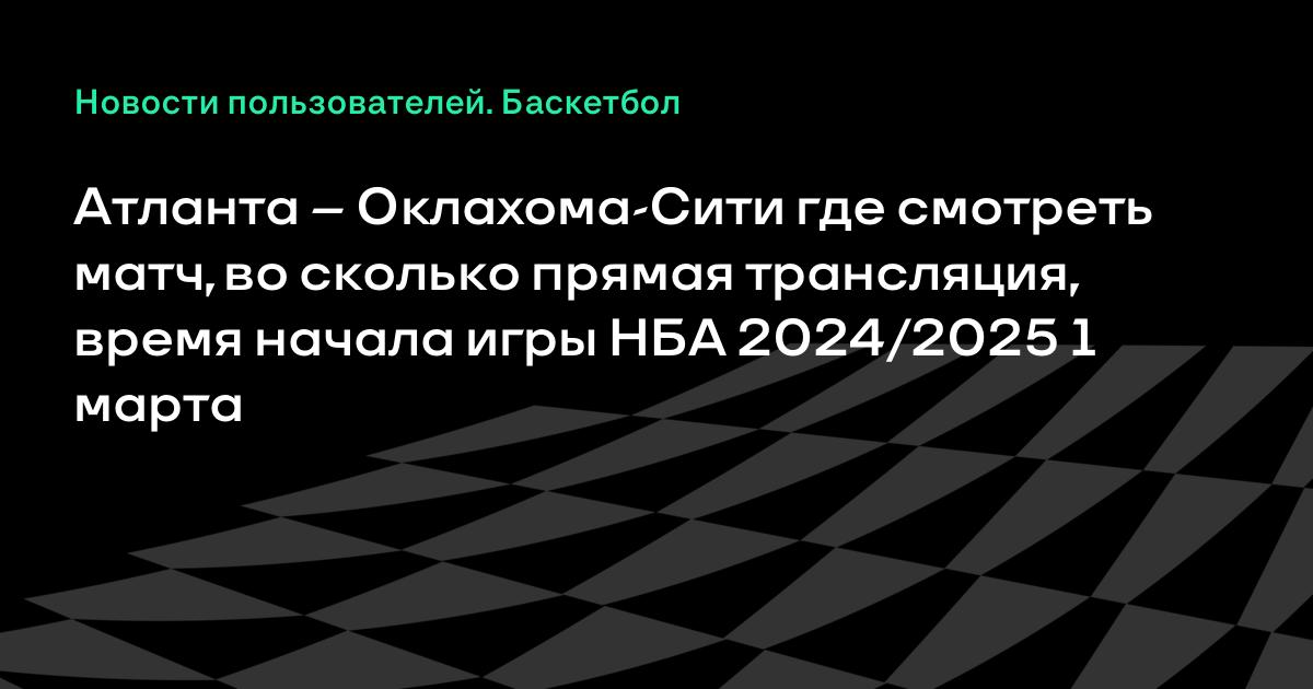 Атланта – Оклахома-Сити где смотреть матч, во сколько прямая трансляция, время начала игры НБА 2024/2025 1 марта