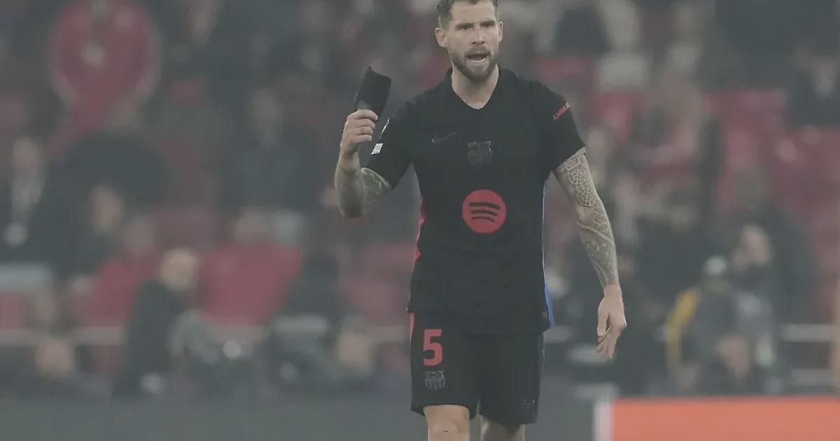 Хавбек «Бенфики» Баррейро за наступ на голень Иньиго получил желтую в конце 1-го тайма матча с «Барселоной»