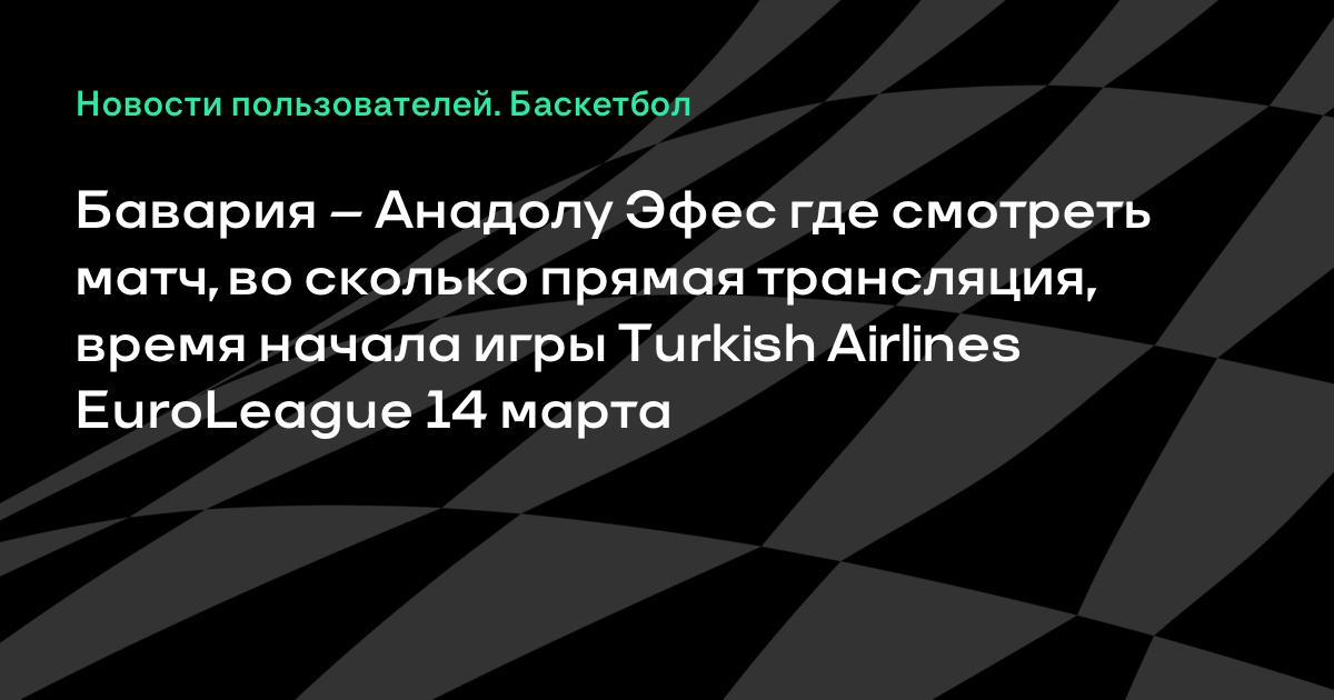 Бавария – Анадолу Эфес где смотреть матч, во сколько прямая трансляция, время начала игры Turkish Airlines EuroLeague 14 марта