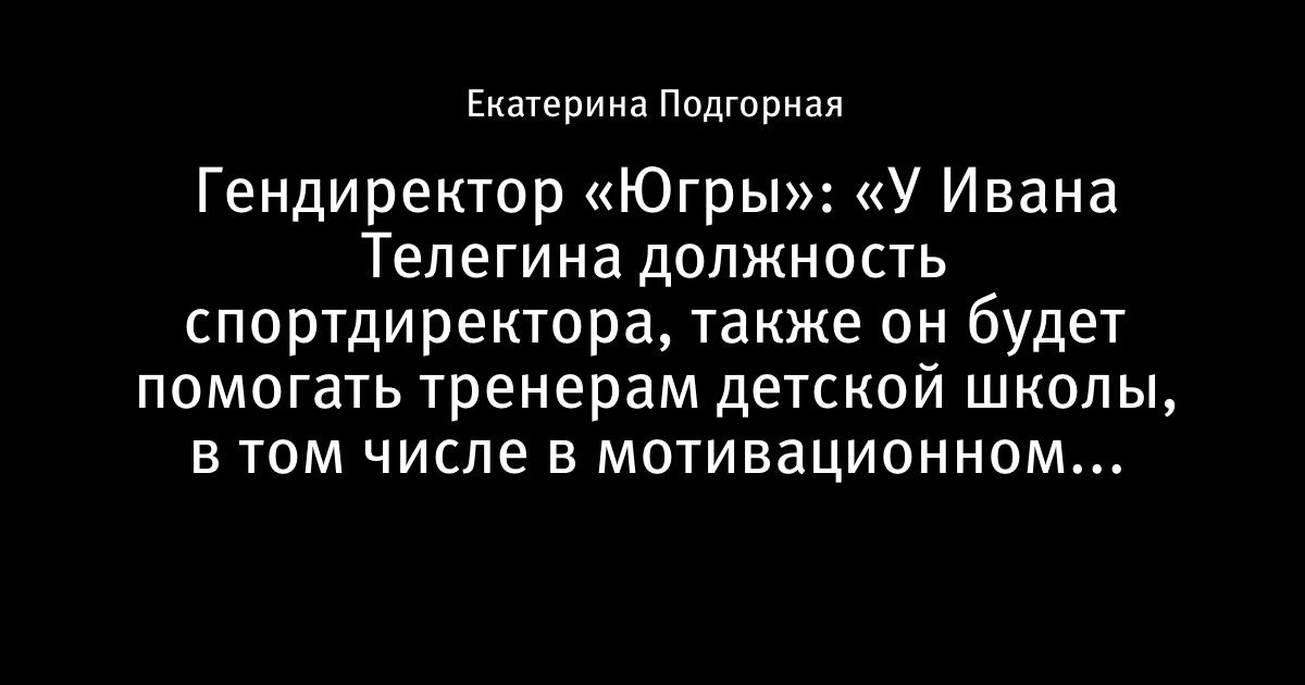 Гендиректор «Югры»: «У Ивана Телегина должность спортдиректора, также он будет помогать тренерам детской школы, в том числе в мотивационном плане. Фронт работы большой»