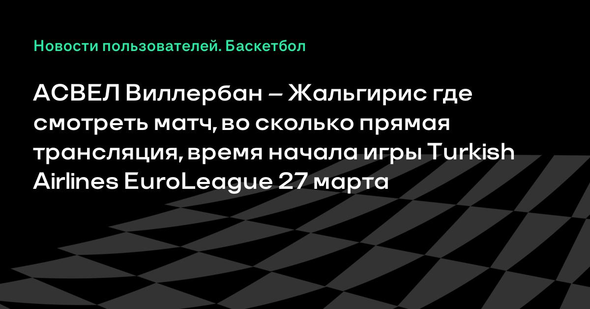 АСВЕЛ Виллербан – Жальгирис где смотреть матч, во сколько прямая трансляция, время начала игры Turkish Airlines EuroLeague 27 марта