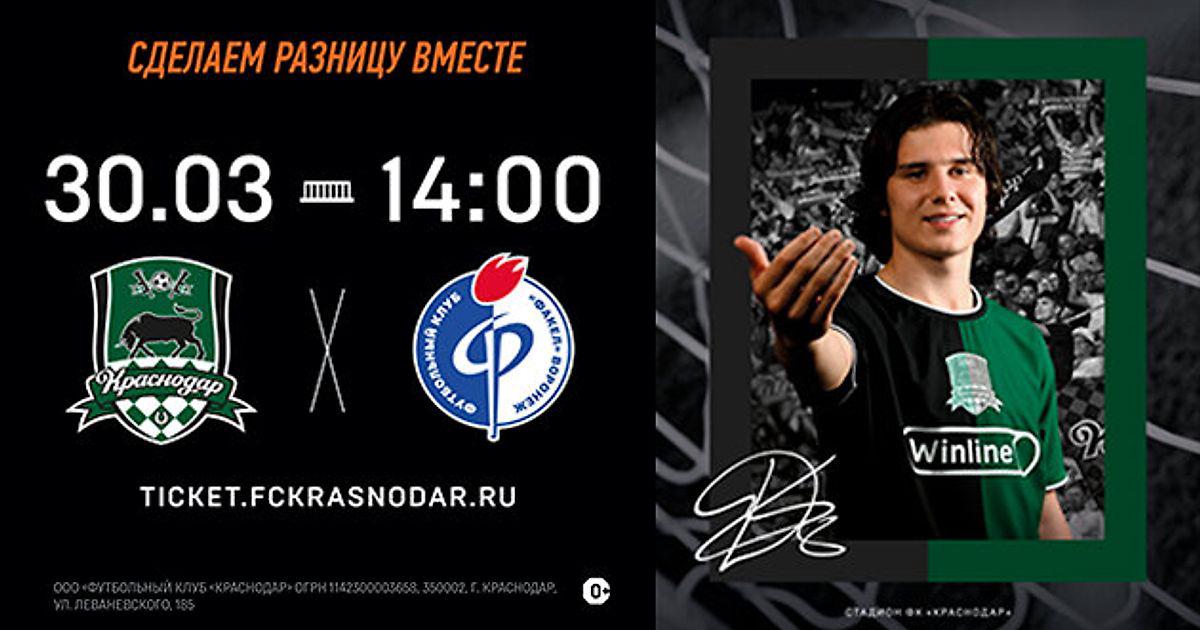 Матч пройдет в воскресенье, 30 марта, в 14:00 на стадионе «Краснодар».