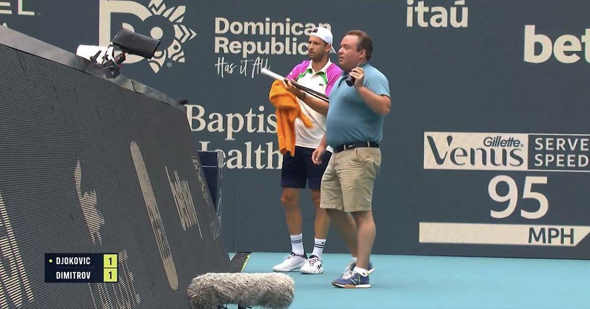 Судья Грег Алленсворт спустился с вышки, подошел к Димитрову и вызвал по рации охрану, чтобы болельщика вывели со стадиона. После этого игра возобновилась.