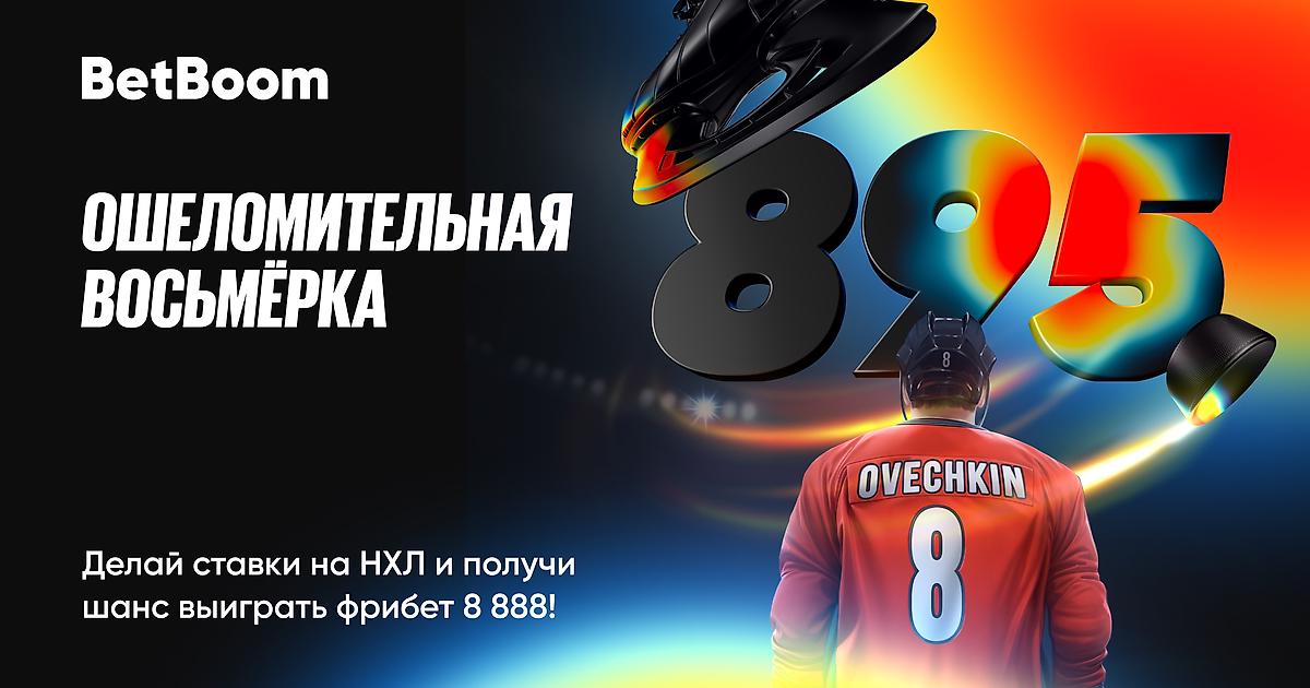Весь мир ждет рекорда Александра Овечкина, легендарной восьмёрки «Вашингтон Кэпиталз». В преддверии оставшихся матчей NHL BetBoom запускает акцию «Ошеломительная восьмёрка» и раздает 100 людям по 8 888 фрибетов.