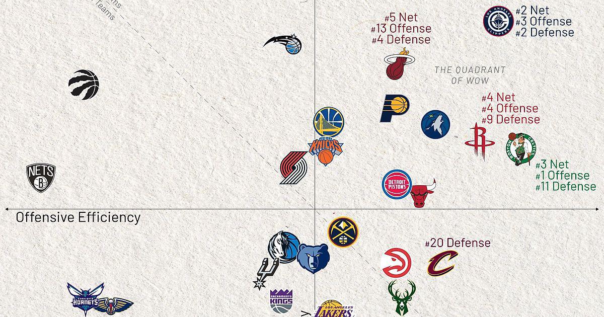 Аналитик Кирк Голдсберри выложил график эффективности клубов НБА.