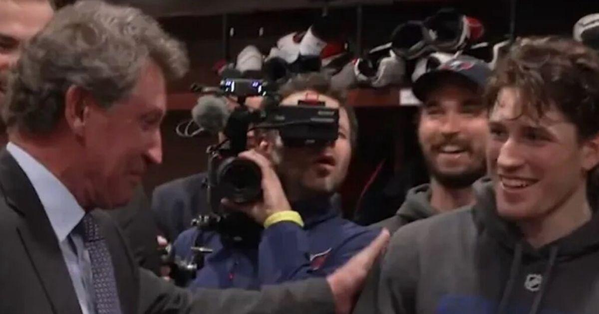 Уэйн Гретцки поздравил Райана Леонарда с 1-м голом в НХЛ.
