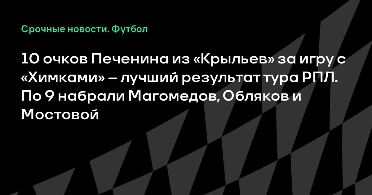 10 очков Печенина из «Крыльев» за игру с «Химками» – лучший результат тура РПЛ. По 9 набрали Магомедов, Обляков и Мостовой