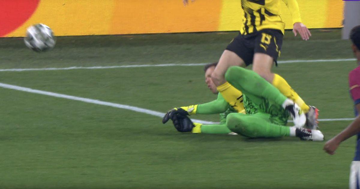На 9-й минуте ответного матча 1/4 финала Лиги чемпионов с «Боруссией» вратарь «Барселоны» сбил полузащитника «Дортмунда» Паскаля Гросса в штрафной. Судья Маурицио Мариани назначил пенальти, ВАР подтвердил его решение.