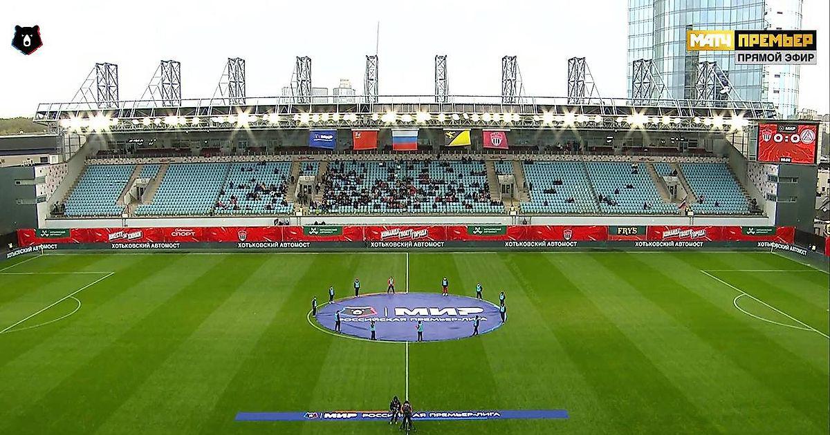 Как сообщает телеграм-канал «Первый спорт», столько человек можно насчитать поголовно на всех трибунах «Арены Химки» в начале матча.