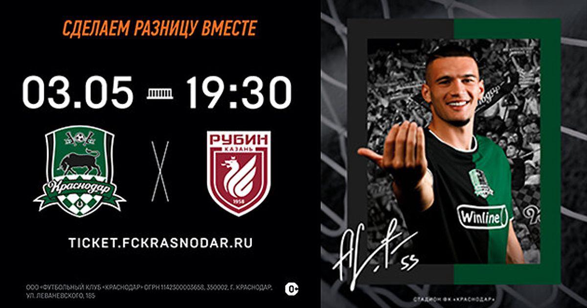 Матч пройдет в субботу, 3 мая, в 19:30 на стадионе «Краснодар».
