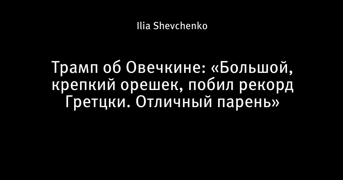 В «Кэпиталс» есть очень, очень хороший игрок. Большой, крепкий орешек, он побил рекорд [Гретцки], и он отличный парень», – сказал Дональд Трамп.