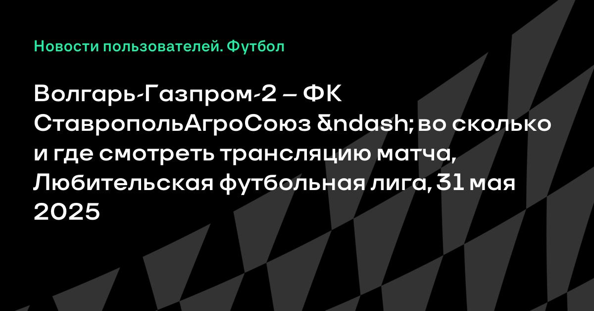 Волгарь-Газпром-2 – ФК СтавропольАгроСоюз – во сколько и где смотреть трансляцию матча, Любительская футбольная лига, 31 мая 2025
