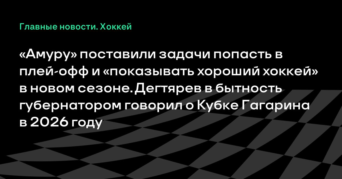«Амуру» поставили задачи попасть в плей-офф и «показывать хороший хоккей» в новом сезоне. Дегтярев в бытность губернатором говорил о Кубке Гагарина в 2026 году