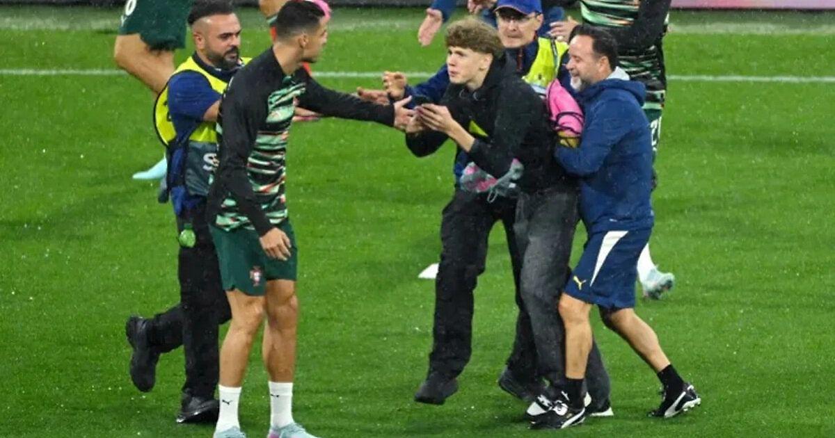 📸 Град и прорвавшийся на поле фанат. Роналду успел настрадаться перед матчем с Германией