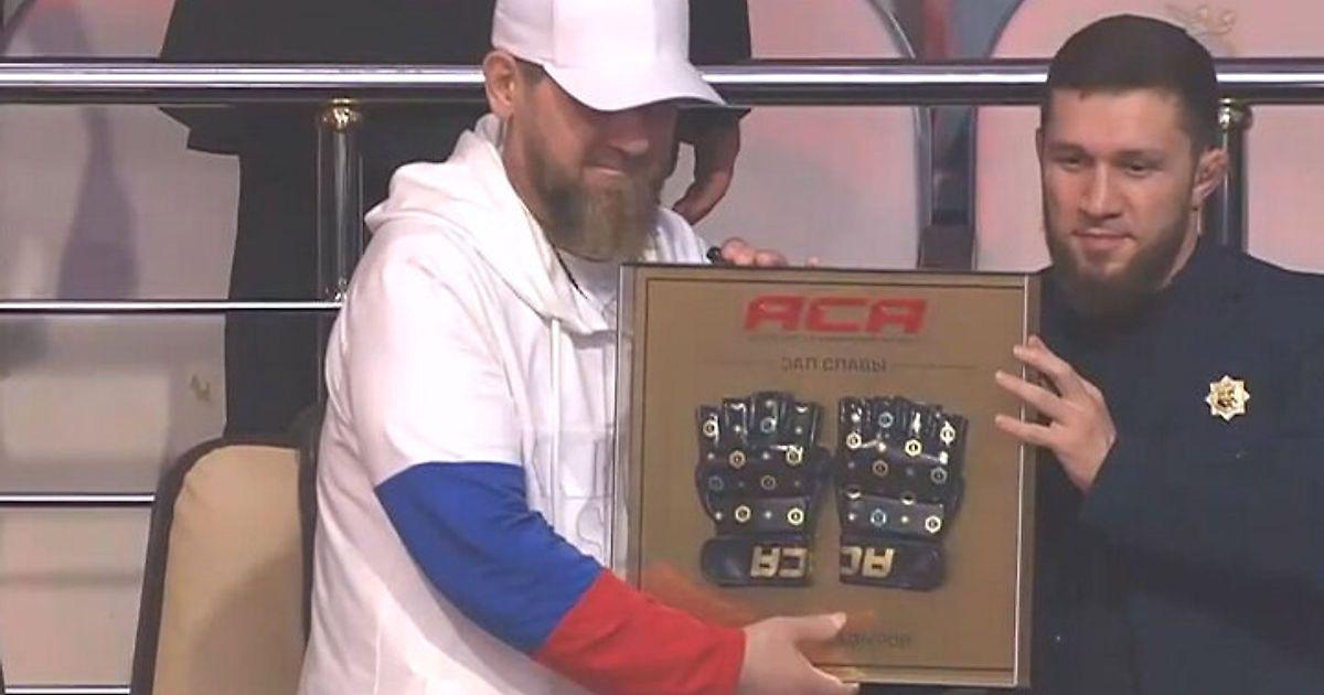Церемония состоялась во время турнира ACA 189, прошедшего в пятницу в Грозном. Кадыров получил специальные перчатки в трофейной рамке.