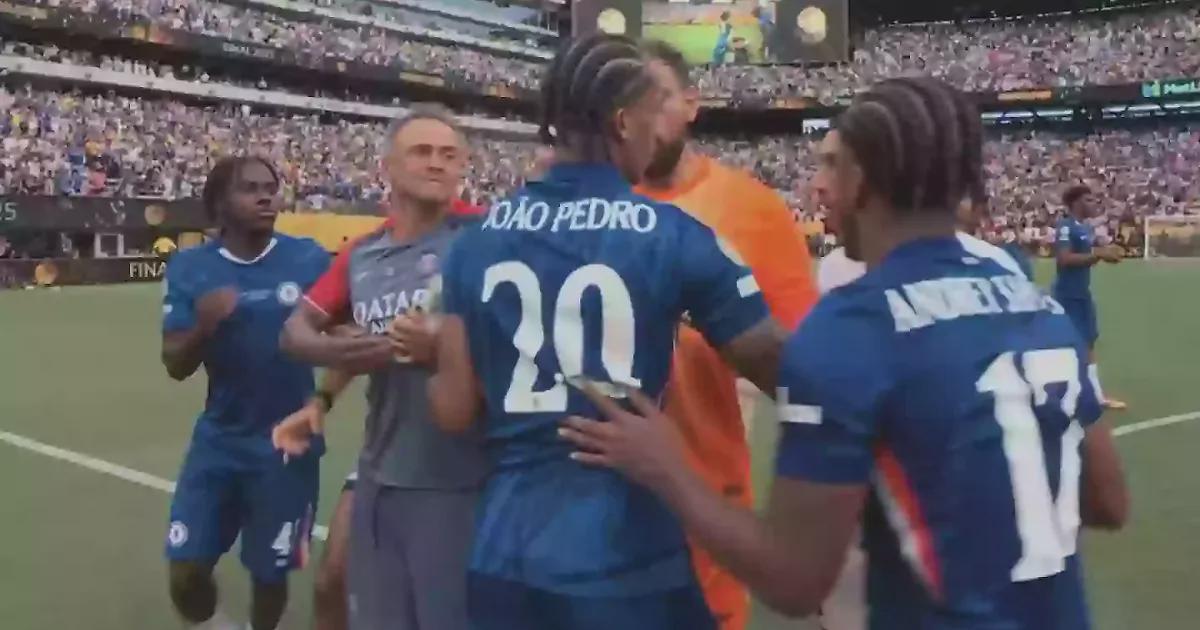 После победы «Челси» над «ПСЖ» (3:0) игроки сцепились на поле. В ходе перепалки тренер «ПСЖ» Луис Энрике толкнул форварда «синих» Жоао Педро, забившего третий гол. Испанец угодил рукой сперва в горло, а затем в лицо бразильцу, и нападающий оказался на газоне.