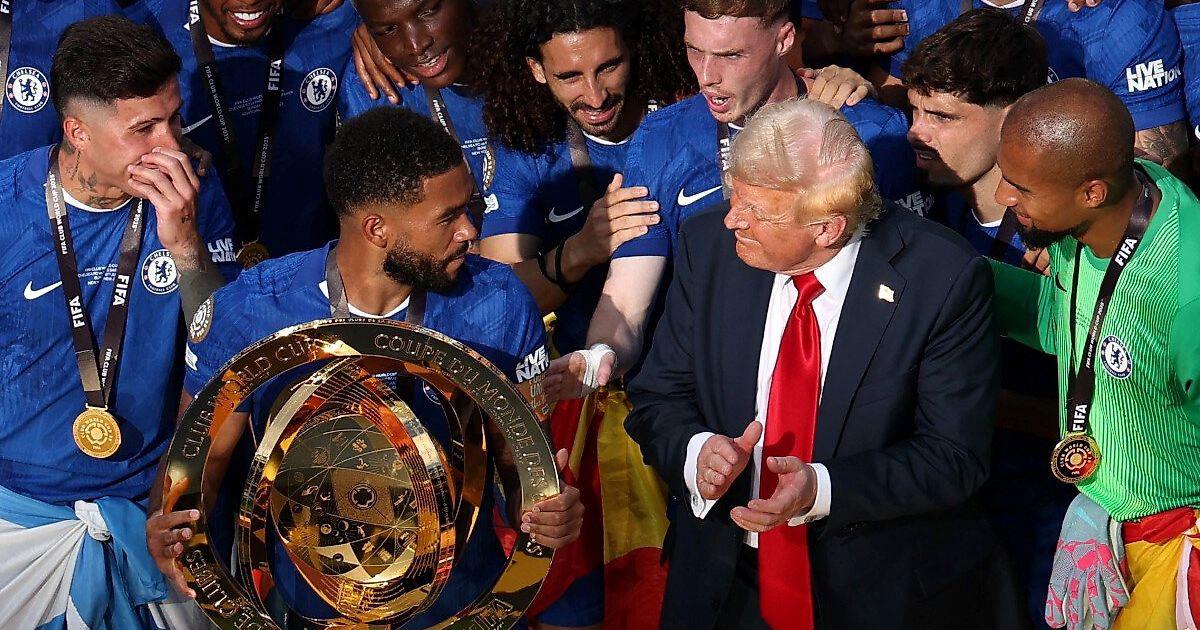 Затем было замечено, как президент ФИФА Джанни Инфантино пытался увести Трампа от игроков «Челси», но президент США остался на месте, стоя рядом с Рисом Джеймсом и Робертом Санчесом.