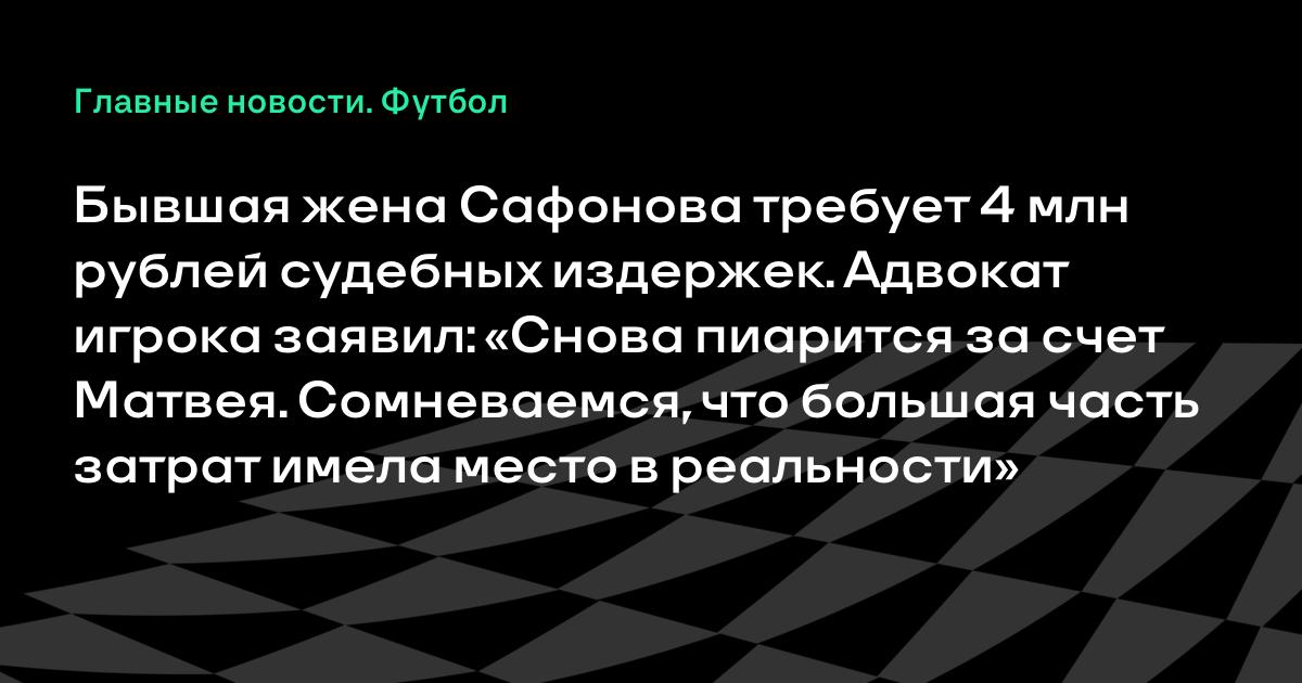 Бывшая жена Сафонова требует 4 млн рублей судебных издержек. Адвокат игрока заявил: «Снова пиарится за счет Матвея. Сомневаемся, что большая часть затрат имела место в реальности»