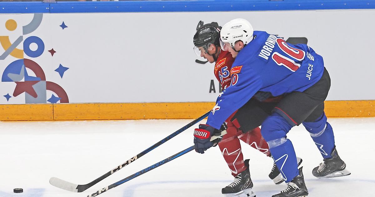 В воскресенье в Москве состоялся выставочный матч между российскими звездами НХЛ и КХЛ. Команда из НХЛ одержала разгромную победу со счетом 15:3. В прошлом году мероприятие состоялось впервые и прошло также в Москве.