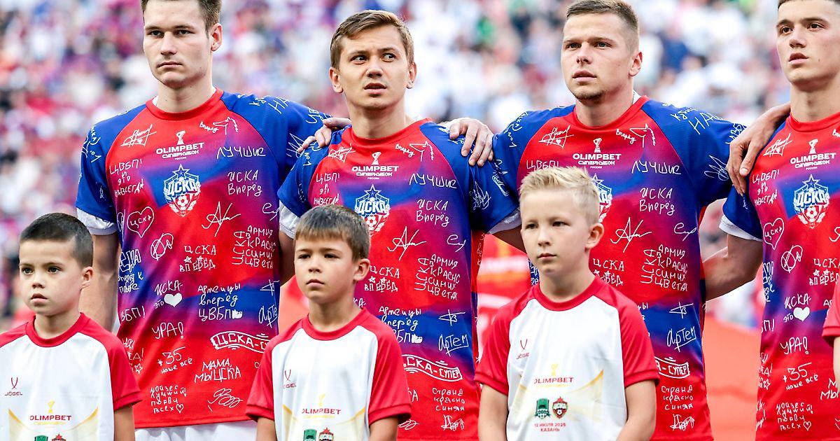 Игроки ЦСКА и «Краснодара» вышли на OLIMPBET Суперкубок России в футболках с посланиями болельщиков в рамках проекта «Суперважные слова»