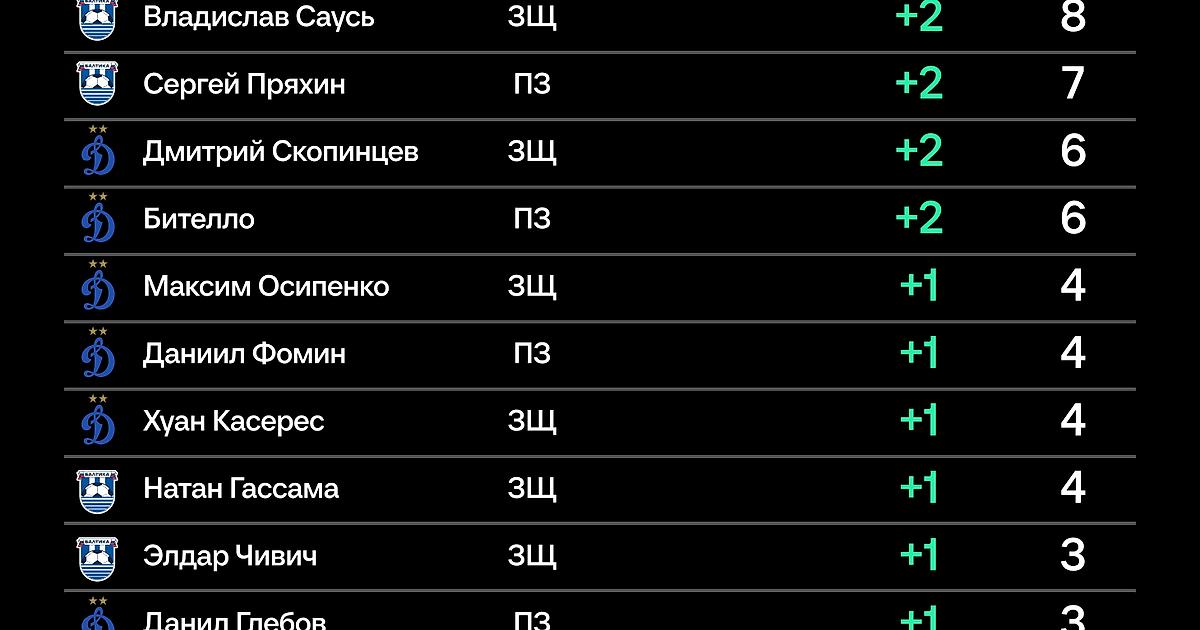 Саусь, Пряхин, Скопинцев и Бителло – лучшие в матче «Динамо» – «Балтика» по возвратам мяча. Они набрали по 2 дополнительных очка