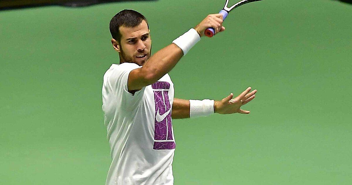 С 17-й ракеткой мира тренируется Евгений Донской.